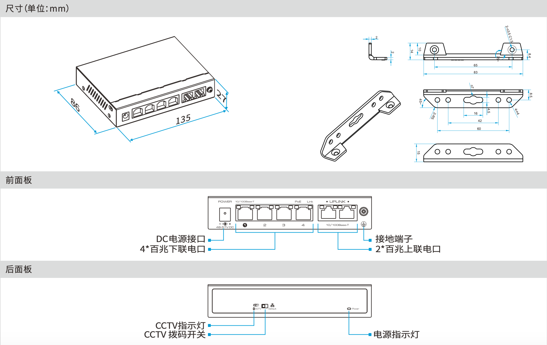 l UTP3-SW04-TP60:4*10/100Base-TX PoE RJ-45端口, 2*100Base-TX RJ-45端口